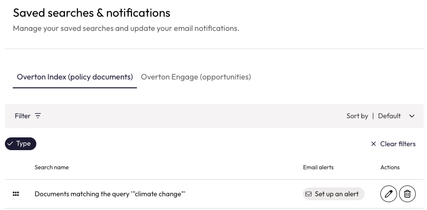 If you have created an Overton account, you are able to customise your search experience in a few different ways. If you are accessing Overton using IP authentication, you will need to create an account in order to access these features.