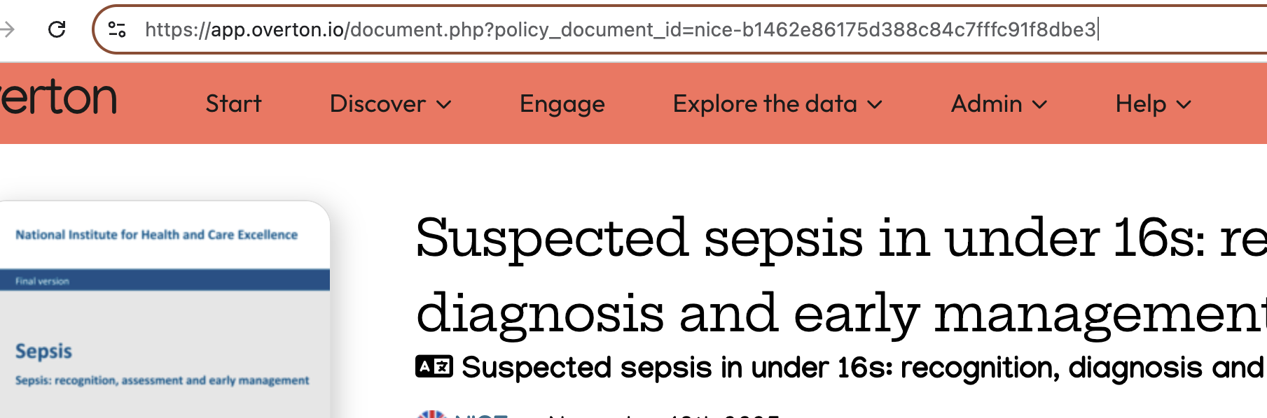 For example, this document published by NICE which is comprised of 9 individual PDFs has the following unique Overton ID: